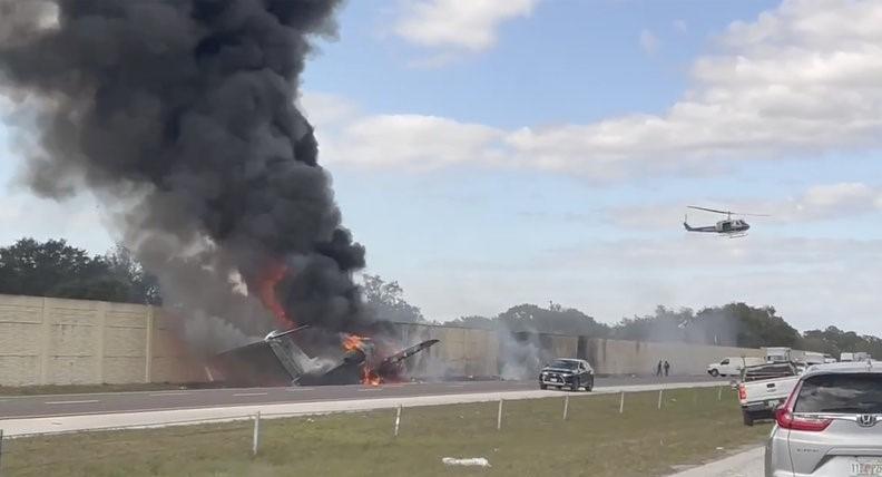 وكشف مقطع فيديو، أنه لدى محاولة الطائرة الصغيرة الهبوط اضطراريًّا على الطريق السريع (75 جنوبي غرب فلوريدا)، اصطدمت بمركبة، وتسببت في توقف حركة المرور مع تصاعد عمود ضخم من الدخان الأسود في الهواء.