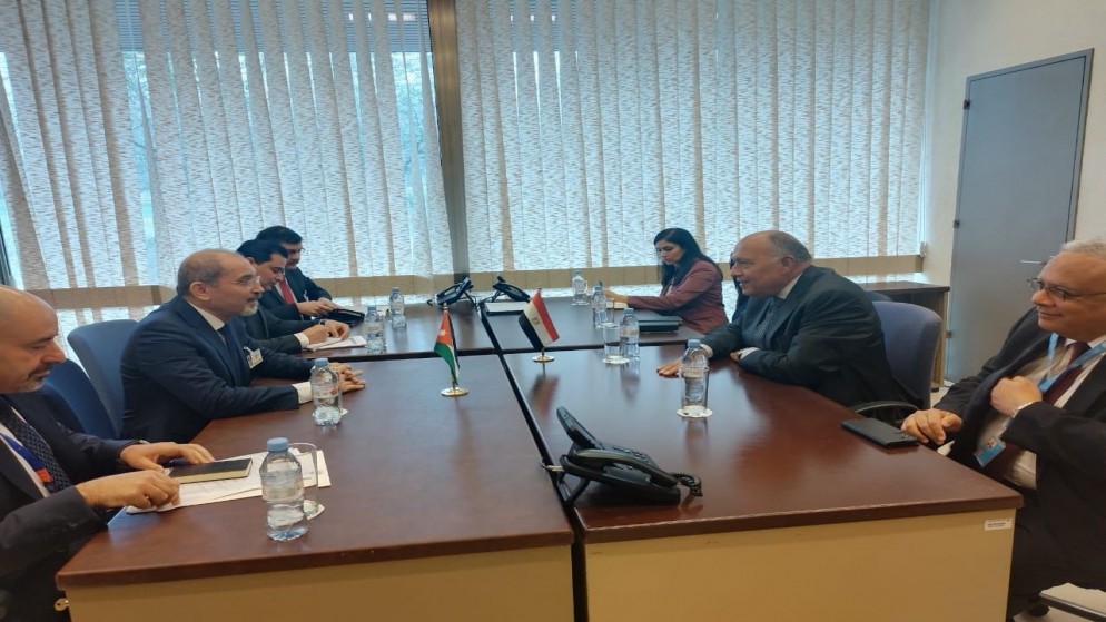 نشامى الاخباري ـ أجرى نائب رئيس الوزراء وزير الخارجية وشؤون المغتربين أيمن الصفدي، مباحثات موسعة مع وزير الخارجية المصري سامح شكري، الاثنين، على هامش أعمال الاجتماع رفيع المستوى للدورة الـ 55 لمجلس حقوق الإنسان التابع للأمم المتحدة في جنيف.
