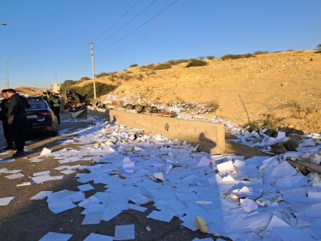 نشامى الاخباري – استعرض التقرير المروري اليومي، الحوادث التي تم التعامل معها خلال 24 ساعة الماضية وكان من أبرزها التعامل مع حادث تدهور مركبة شحن في منطقة ناعور نزول العدسية باتجاه البحر الميت، ما أدى إلى انقلابها وانتقالها إلى الشارع المقابل وصدمها بمجموعة من المركبات، نتج عن الحادث 6 وفيات وإصابة بالغة وإصابتين متوسطتين، تم نقلهم من قبل مجموعات الدفاع المدني إلى المستشفى .