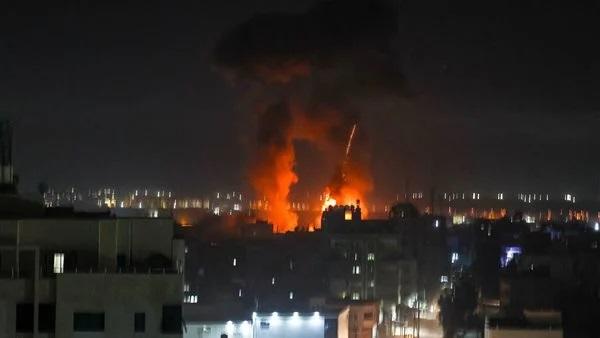نشامى الاخباري ـ شن طيران الاحتلال الحربي سلسلة غارات على مخيم المغازي وسط قطاع غزة.