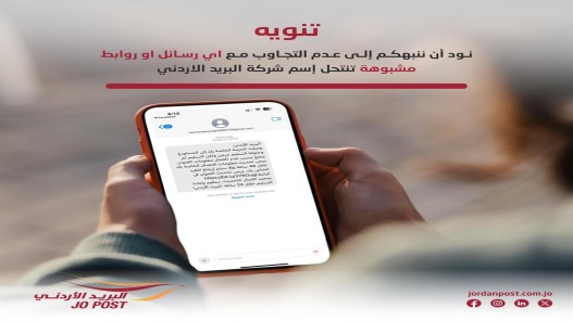 نشامى الاخباري _ حذرت شركة البريد الأردني من رسائل نصية تدعي أنها صادرة عنها، وتفيد بوجود نقص في معلومات التسليم. وأكدت الشركة في بيان، أن البريد الأردني لا يرسل مثل هذه الرسائل ولا يطلب أي معلومات مالية عبر الرسائل النصية. وشدد البريد الأردني على ضرورة تجاهل وحذف أي رسالة من هذا النوع، وعدم التفاعل معها بأي شكل من الأشكال. كما دعا إلى التأكد من صحة الرسائل عن طريق الاتصال بخدمة العملاء على الرقم 062005777.