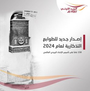 نشامى الاخباري – أعلنت شركة البريد الأردني عن طرح إصدار جديد من الطوابع التذكارية لعام 2024 تحت عنوان “150 عاماً على تأسيس الإتحاد البريدي العالمي “، إعتبارا من صباح يوم الاربعاء الموافق 09/10/2024.