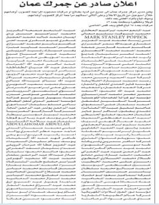 نشامى الاخباري – أعلن مركز جمرك عمان اليوم الأربعاء، عن أسماء ممن لديهم بضائع ومركبات محجوزة لدى المركز، ضرورة مراجعة المركز لتصويب أوضاعهم.