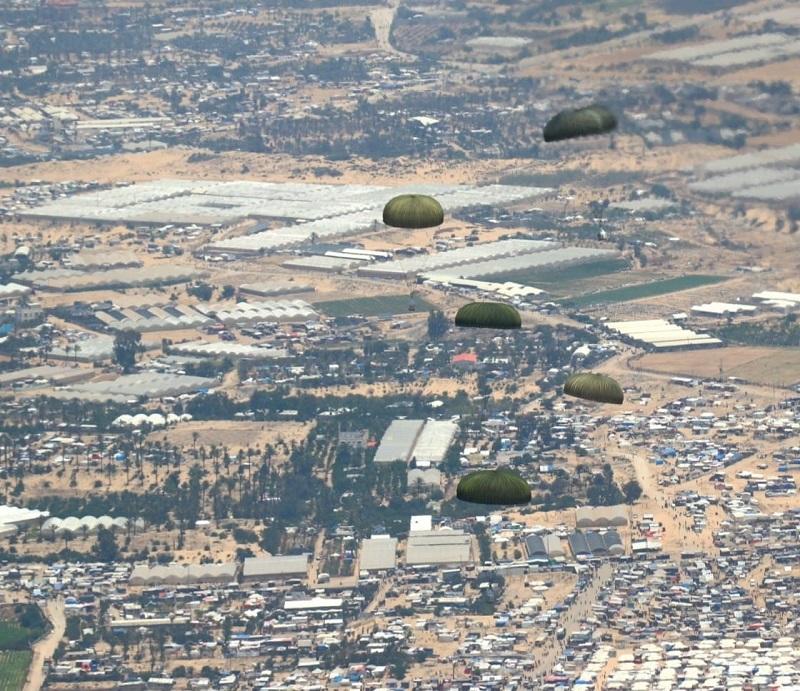واشتملت الإنزالات على مساعدات إغاثية وإنسانية لمساندة الأهل في قطاع غزة، جراء الحرب الإسرائيلية المستمرة على القطاع.