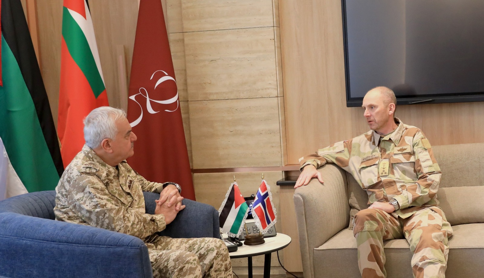 وبحث اللواء الركن الحنيطي مع الضيف، بحضور السفير النرويجي في عمّان، أوجه التعاون العسكري والتنسيق المشترك في مختلف المجالات العسكرية العملياتية والتدريبية واللوجستية، بما يخدم مصلحة القوات المسلحة في البلدين الصديقين.