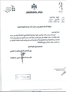 سائلين المولى عزوجل له التوفيق والنجاح والتقدم الدائم لخدمة الأردن والمسيرة التعليمية تحت ظل القيادة الهاشمية الحكيمة بقيادة جلالة الملك عبدالله الثاني ابن الحسين المعظم حفظه الله ورعاه.
