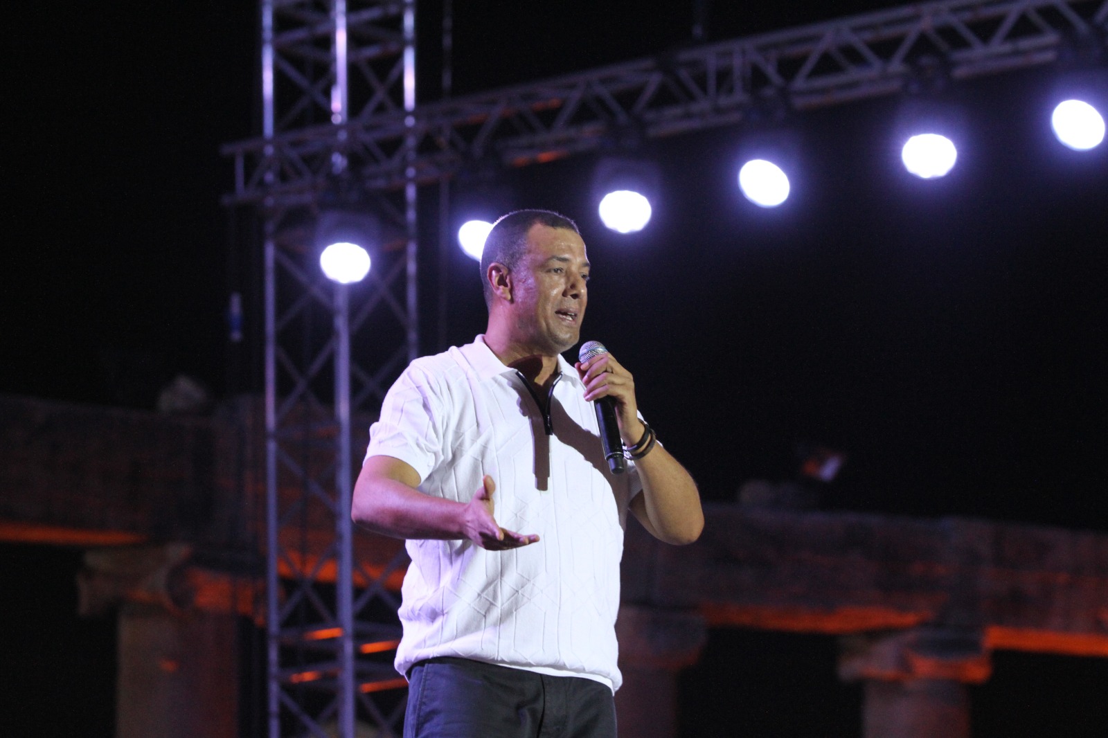 نشامى الاخباري_ ليلة استثنائية عاشها جمهور جرش للثقافة والفنون في دورته الـ38 بالأمسية الشعرية التي أحياها الشاعر المصري هشام الجخ على خشبة مسرح الساحة الرئيسية بحضور رئيسة اللجنة العليا لمهرجان جرش للثقافة والفنون وزيرة الثقافة هيفاء النجار والمدير التنفيذي لمهرجان جرش أيمن سماوي.