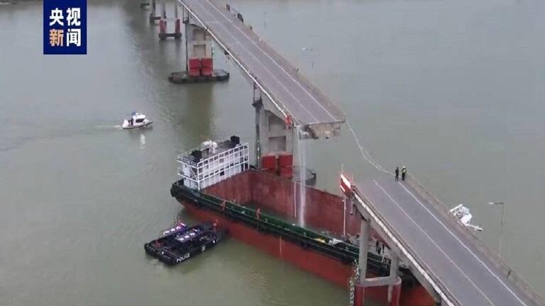 الصين.. اصطدام ناقلة حاويات بجسر وسقوط حافلة في النهر