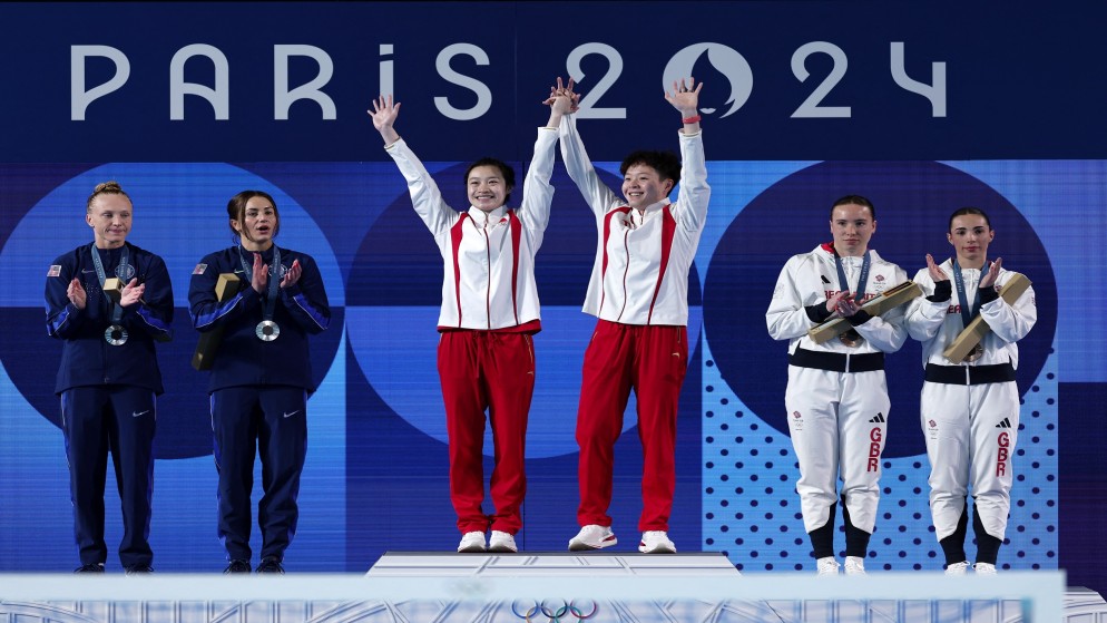 ونجحت الصين في التتويج بالذهبية في الغطس من المنصة المتحركة من ارتفاع 3 أمتار في المركز المائي في سان دوني متوفقة على الولايات المتحدة وبريطانيا.