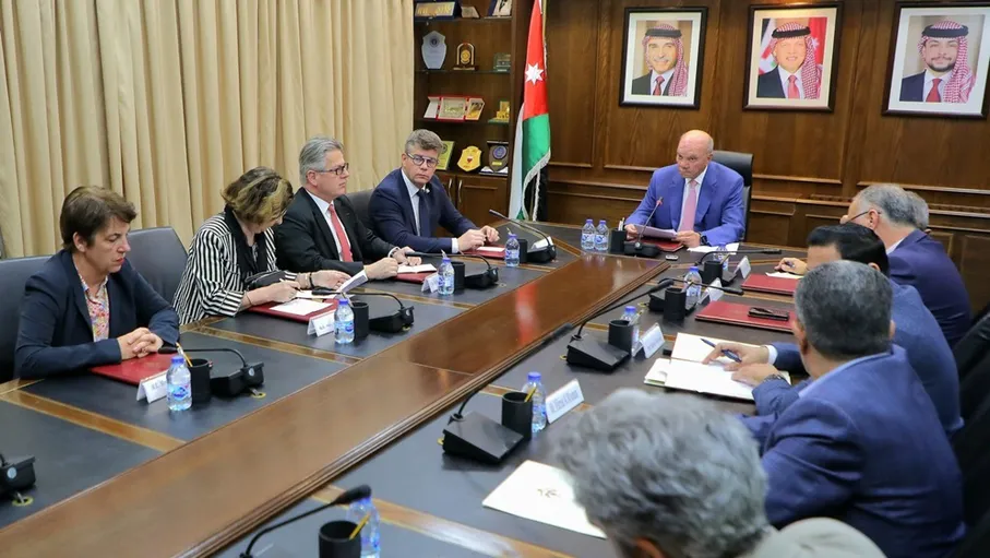 وأشار إلى التحديات الاقتصادية التي تواجه الأردن بسبب الأوضاع الراهنة في المنطقة، وتحمله نحو 80% من تكاليف استضافة نحو مليون و300 ألف لاجئ سوري على أراضيه، مؤكدًا أهمية زيادة الاستثمارات الفرنسية في الأردن والاستفادة من البيئة الاستثمارية الأردنية الجاذبة، خاصة في مجالات قطاع التكنولوجيا والسياحة والطاقة المتجددة والنقل العام والمياه، كما ثمن الدعم الذي تقدمه فرنسا للأردن ودعا إلى زيادته.