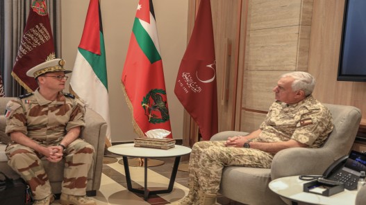 نشامى الاخباري _استقبل رئيس هيئة الأركان المشتركة اللواء الركن يوسف أحمد الحنيطي، اليوم الاثنين، في مكتبه بالقيادة العامة، قائد القوات الفرنسية البحرية في منطقة المحيط الهندي الفريق البحري إيمانويل سلارز والوفد المرافق.