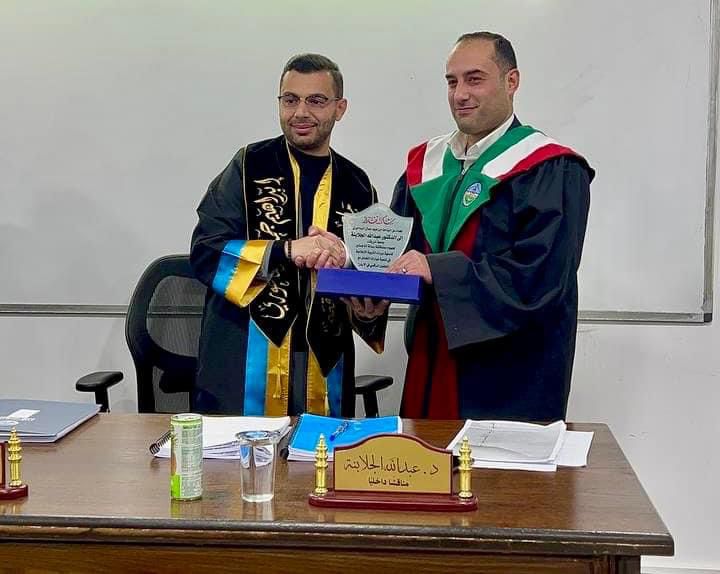 وشارك في لجنة المناقشة؛ الدكتور أمجد عمر الصفوري عميد كلية الإعلام في جامعة الزرقاء (المشرف)، الدكتور عبدالله الجلابنة/ جامعة الزرقاء، والدكتورة ريم الزعبي /جامعة آل البيت.