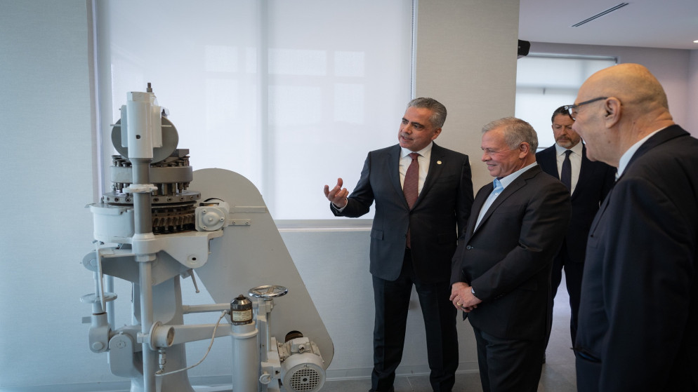 واستمع جلالته، خلال الزيارة، إلى إيجاز من رئيس مجلس الإدارة أكرم جراب، حول إنجازات الشركة منذ تأسيسها قبل 50 عاما، ودورها في تعزيز الأمن الدوائي محليا وعالميا.