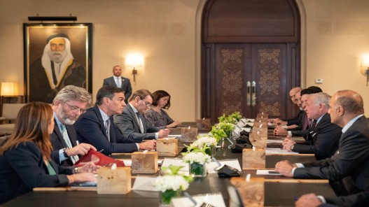 وحضر اللقاء رئيس الوزراء بشر الخصاونة، ونائب رئيس الوزراء وزير الخارجية وشؤون المغتربين أيمن الصفدي، ومدير مكتب جلالة الملك، جعفر حسان، والوفد المرافق لرئيس الوزراء الإسباني، والسفير الإسباني في عمّان ميغيل دي لوكاس.