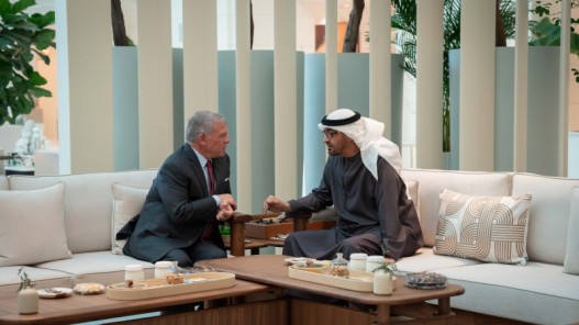 وحضر اللقاء رئيس الوزراء الدكتور بشر الخصاونة، ومدير مكتب جلالة الملك، الدكتور جعفر حسان، والسفير الأردني في أبوظبي نصار الحباشنة.