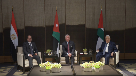 نشامى الاخباري ـ ودع جلالة الملك عبدالله الثاني، اليوم الأربعاء، الرئيس المصري عبدالفتاح السيسي والرئيس الفلسطيني محمود عباس لدى مغادرتهما مطار الملك الحسين الدولي بالعقبة، بعد أن شاركا في القمة الثلاثية الأردنية المصرية الفلسطينية التي عقدت اليوم، لبحث التطورات الخطيرة في غزة والمستجدات بالضفة الغربية.