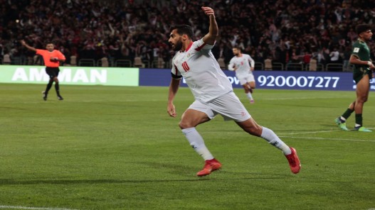 وسجل الهدف الأول للنشامى اللاعب موسى التعمري في الدقيقة 15، والهدف الثاني من ركلة جزاء يزن النعيمات في الدقيقة 27.