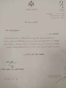 4. تم إجراء مسح كامل للمياه والتربة ومياه سد الوحدة وأظهرت التنتائج خلوها تماماً من أي أثر لبكتيريا الكوليرا ( مرفق نتائج الفحوصات).