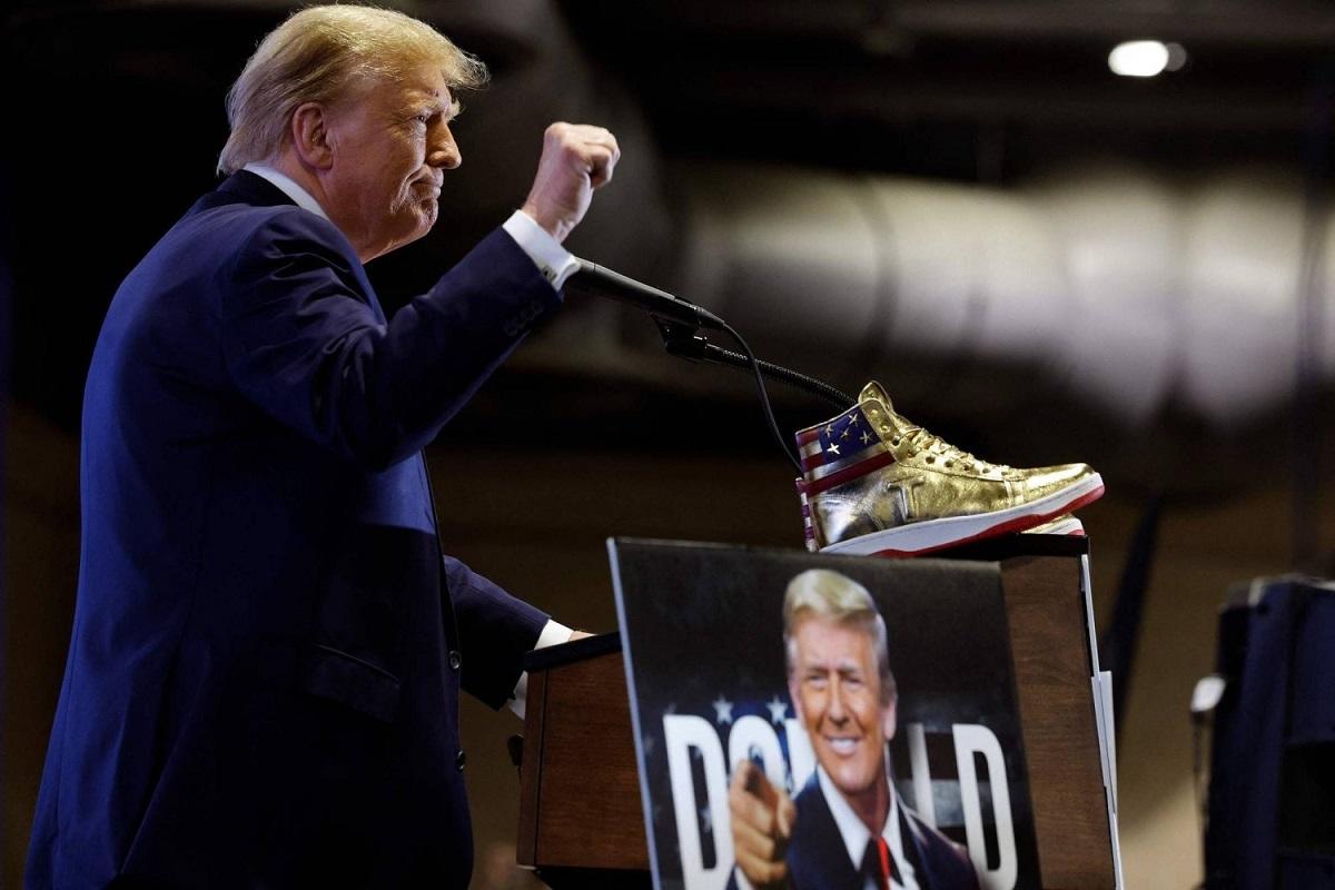 بعد ساعات فقط من تغريمه 355 مليون دولار في قضية التحايل التجاري في نيويورك، كشف ترمب في فعالية بفيلادلفيا، في ولاية بنسلفانيا، عن آخر منتجاته الترويجية: حذاء ذهبي اللون يحمل علامة ترمب التجارية، يقدّر بـ399 دولاراً. كما أطلق موقعاً إلكترونياً لبيع عطر يحمل اسم «الفوز 47»، في إشارة إلى سعيه ليصبح الرئيس الـ47، ويباع بقيمة 99 دولاراً.