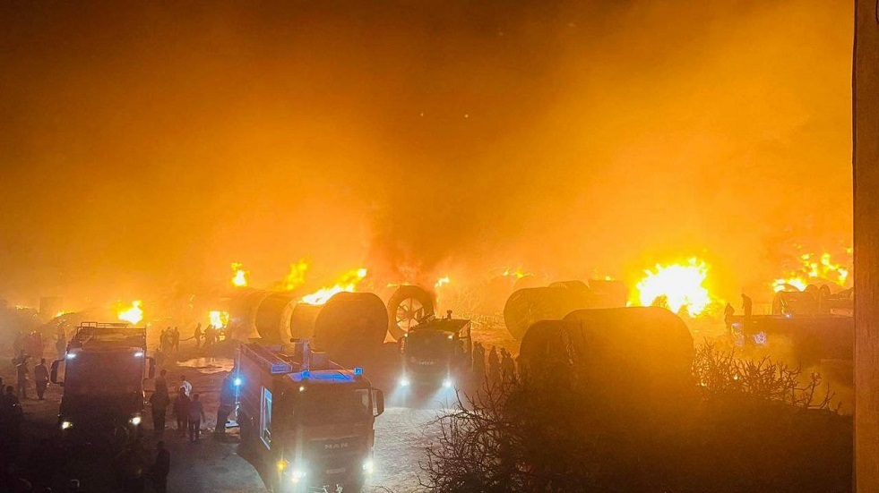 نشامى الاخباري – خرج حريق ضخم، اندلع في مخازن الكهرباء بمنطقة الكريمية جنوب العاصمة طرابلس، عن السيطرة، بعدما اجتاحت النيران المناطق المحيطة وباتت تهدد بإحراق عشرات المنازل القريبة، وسط مخاوف من امتداده إلى خطوط الغاز القريبة.