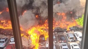 وأظهرت مقاطع الفيديو والصور المتداولة ألسنة النار الكبيرة التي امتدت بسرعة نحو السيارات المركونة في المنطقة، مما أثار حالة من الهلع بين المواطنين