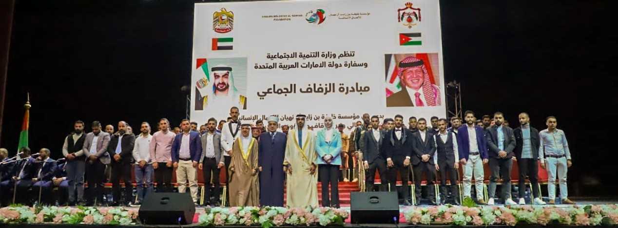 نشامى الاخباري _ رعى وزير الأوقاف والشؤون والمقدسات الإسلامية الدكتور محمد الخلايلة، مساء اليوم الخميس، زفافا جماعيا لـ 200 عريس وعروس من الأيتام، أقامته وزارة التنمية الاجتماعية، والسفارة الإماراتية في عمان، بدعم من مؤسسة خليفة بن زايد آل نهيان للأعمال الإنسانية، على مسرح الأرينا في جامعة عمان الأهلية.
