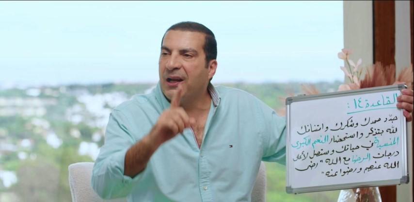 وختم خالد بذكر القاعدة الرابعة عشر، وهي: جدد حمدك وشكرك وامتنانك لله. بتذكر واستحضار النعم الكبرى المنسية في حياتك، وستصل لأعلى درجات الرضا مع الله “رضي الله عنهم ورضوا عنه”.