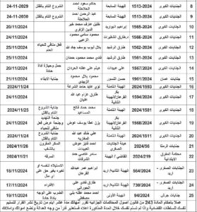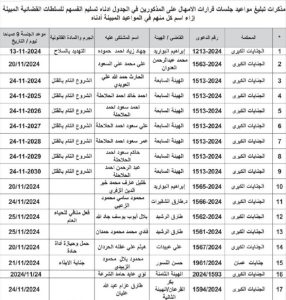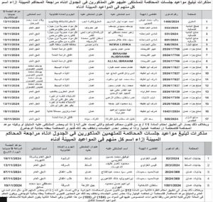 ووفقاً للمذكرات، فإن يجب من المذكورين في الجداول مراجعة المحاكم المبينة ازاء اسم كل منهم في المواعيد المبينة أدناه.