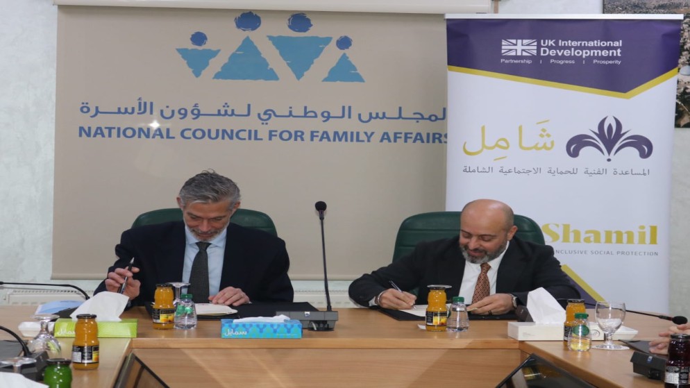 نشامى الاخباري_وقع المجلس الوطني لشؤون الأسرة وبرنامج المساعدة الفنية للحماية الاجتماعية الشاملة في الأردن (شامل) الثلاثاء، مذكرة تفاهم تهدف إلى تعزيز التعاون في القضايا ذات الاهتمام المشترك المتعلقة بشؤون الأسرة.