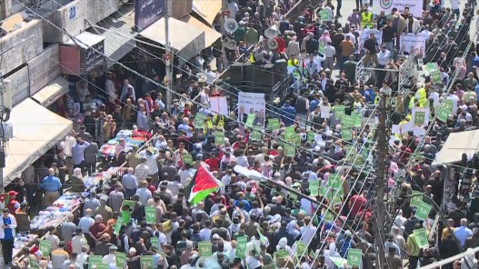 نشامى الإخباري_انطلقت بعد صلاة الجمعة، مسيرات حاشدة في العاصمة عمّان ومختلف المحافظات تنديدا ورفضا للعدوان الإسرائيلي المتواصل على الفلسطينيين في قطاع غزة.