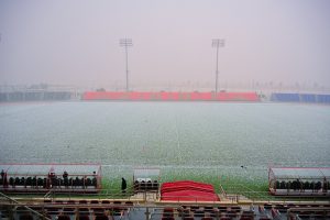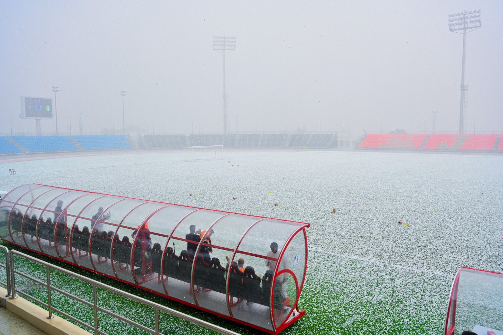 مشهد نادر.. الثلوج تكسو ملعب الجوف بالسعودية- صور