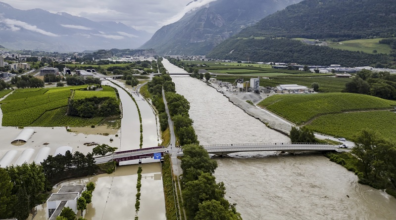وإلى الشمال، فاض نهر الرون على ضفتيه في عدة مناطق في كانتون فاليه، مما أدى إلى غمر طريق سريع وخط للسكك الحديدية.