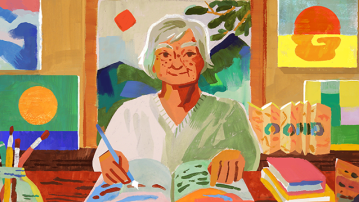 نشامى الاخباري_ شاعرة وكاتبة ، ولدت في بيروت، لبنان، حيث قام غوغل بتغيير هيئة شعاره ليتناسب مع احتفاله بالكاتبة العربية.