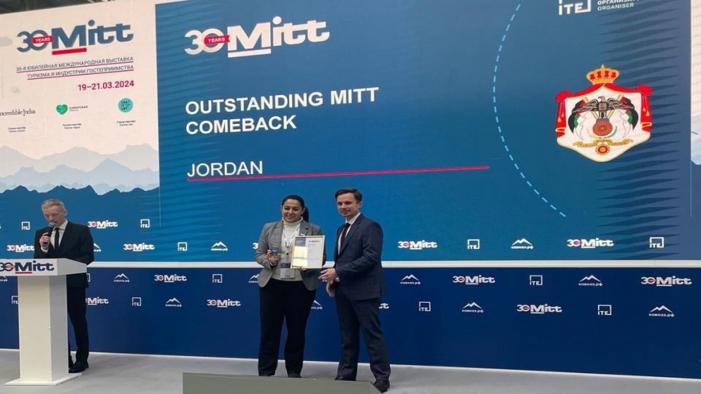 نشامى الاخباري_ قالت هيئة تنشيط السياحة اليوم الثلاثاء، أن الأردن حصل على جائزة أفضل جناح مشارك في المعرض الروسي للسياحة والسفر، وذلك خلال الفترة 19 – 21 آذار الحالي.