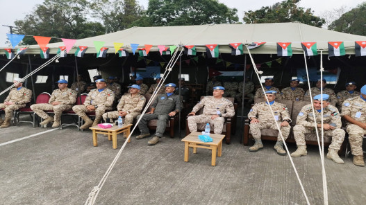 نشامى الاخباري _ احتفلت وحدة الطائرات العمودية الأردنية / الكونغو 1، العاملة ضمن قوات حفظ السلام الدولية، بعيد ميلاد جلالة القائد الأعلى الملك عبدالله الثاني، الأربعاء، في أرض المهمة بجمهورية الكونغو الديمقراطية / غوما، وسط أجواء تعكس عمق الانتماء والروح المعنوية العالية لأفراد الوحدة.