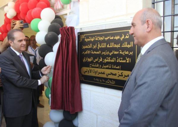 نشامى الاخباري – افتتح وزير الصحة الدكتور فراس الهواري اليوم الثلاثاء، مركز صحي عمراوة الأولي في لواء الرمثا بعد اعادة تأهيله والانتهاء من أعمال الصيانة للمركز بتكلفة بلغت 165 ألف دينار.