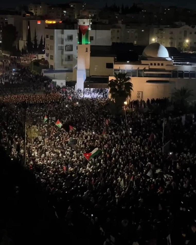 نشامى الاخباري – طالب أردنيون خلال وقفة تضامنية في ساحة الكالوتي بالعاصمة عمان، مساء الثلاثاء، بوقف عدوان الاحتلال الإسرائيلي المتواصل منذ 172 يوما على قطاع غزة.