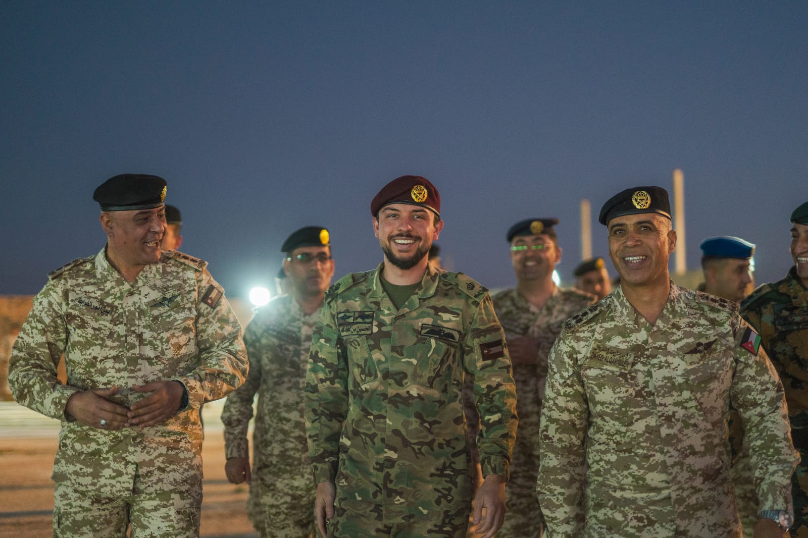 وكان في استقبال سمو ولي العهد لدى وصوله، رئيس هيئة الأركان المشتركة اللواء الركن يوسف أحمد الحنيطي، وقائد المنطقة العسكرية الوسطى، وقائد اللواء.