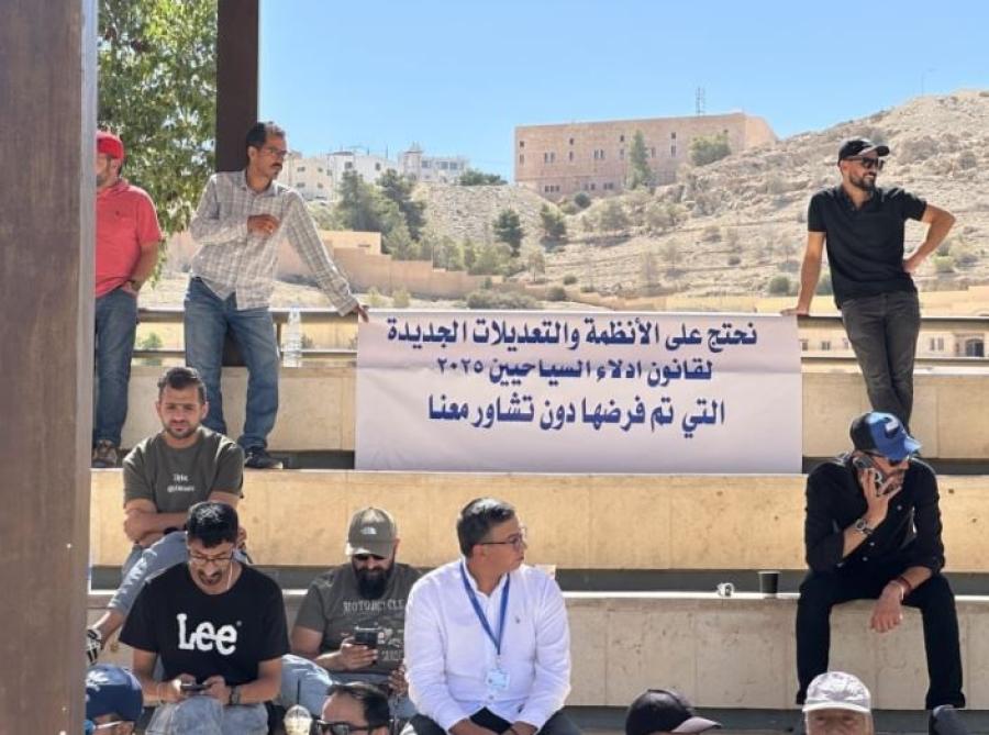 وقفة احتجاجية لأدلاء السياحة في ساحة مركز زوار البترا