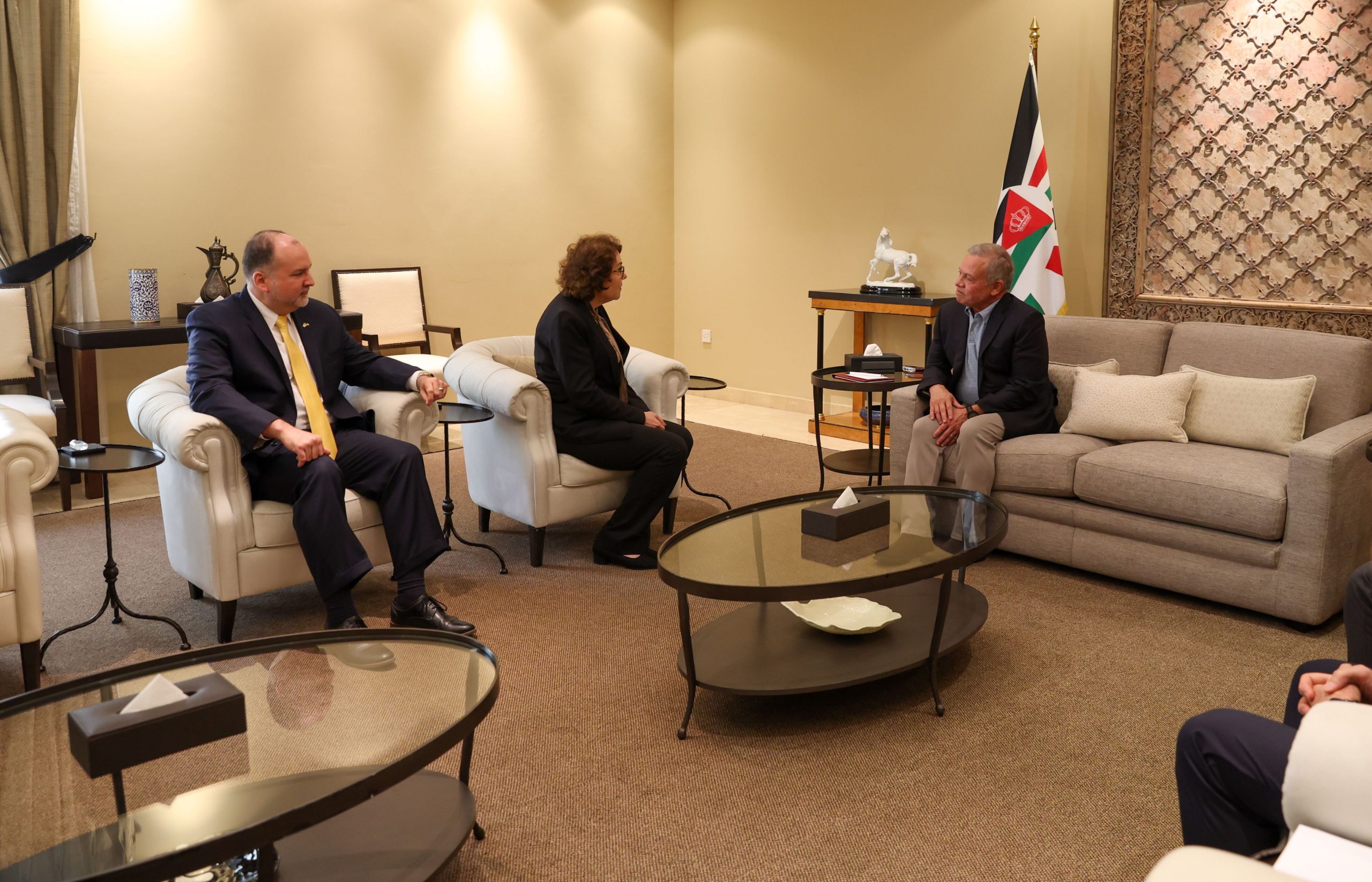 كما تم التأكيد على أهمية لقاءات جلالة الملك مع أعضاء مجلسي الشيوخ والنواب الأمريكيين، وحرص أعضاء الكونغرس على زيارة الأردن بشكل دوري لتوسيع التعاون بين البلدين وتبادل وجهات النظر حول التطورات الإقليمية والدولية.