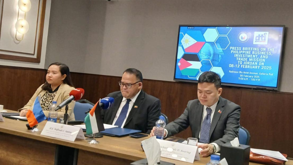 وقال إن الأردن يعمل كبوابة طبيعية للشركات الفلبينية التي تتطلع إلى التوسع في المنطقة، لافتا إلى أن وزارة التجارة والصناعة من خلال مكتب تسويق الصادرات التابع لها، قادت هذه المهمة بالتعاون مع وزارة الزراعة ومركز التجارة والاستثمار الفلبيني في دبي.