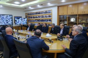 واستمع الوزير خلال لقاءه نقيب المهندسين م.احمد سمارة الزعبي، لشرح حول سير الانتخابات وترتيبات النقابة قدمه رئيس لجنة إدارة الانتخابات امين عام النقابة م.علي ناصر، بحضور امين عام الوزارة د.جمال قطيشات ومدير عام دائرة العطاءات م.محمود خليفات ورئيس هيئة تنظيم قطاع الطاقة م.زياد السعايدة.