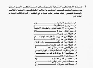 تشكيل مجلس أمناء هيئة موقع المغطس برئاسة الامير غازي- أسماء