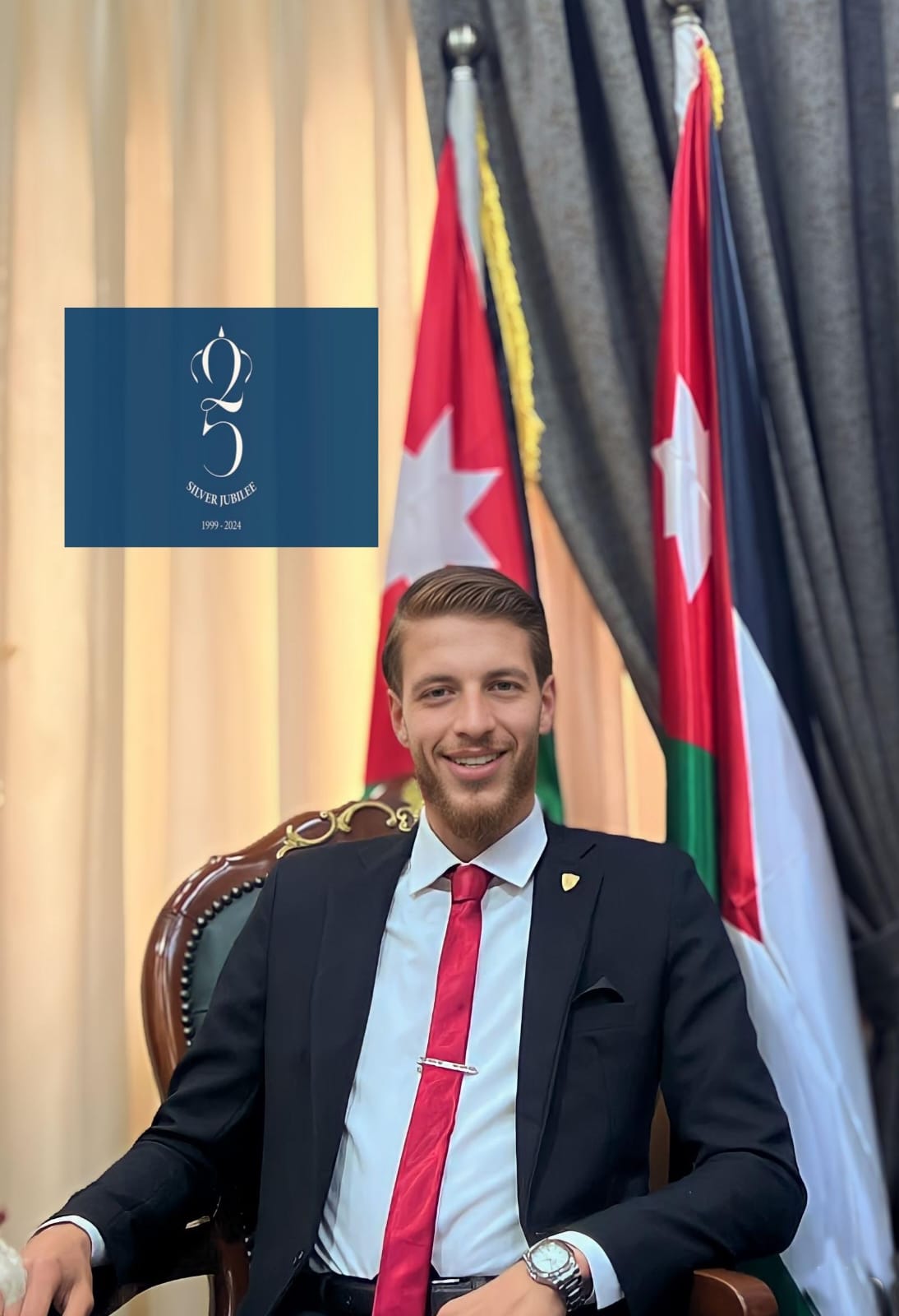 25 عام على تسلم جلالة الملك عبدالله الثاني ابن الحسين البلاد الهاشمية الاردنية ورصد وتركيز سلطاته الدستورية وتأدية القسم الذي سار بسيرورة العزة والانتماء للوطن الولاء للموطن والسند الكافي والوافي للمواطن ، وهو حدث يجول ويحول بالفخر والعلو، وان أُطلق به اسماً اليوبيل الفضي واستحداث شعار يُركز الأناقة الكلاسيكية ويرنوا للبساطة الحديثة ، والذي جسد وقدس التقاليد والعادة الاردنية وعزز الريادة والابتكار وقنن ملكة الانتماء لهذا الوطن بالشعارات المعنوية التي تدلي حُب المملكة الاردنية الهاشمية في قلوب الاردنيين ، وجسد ختام هذا الشعار المتحدث التفاني الاردني للعاهل الاردني وتفانيه لخدمة الوطن والشعب ، والشعار المستوحى من الرموز الملكية وتوقيع جلالة الملك عبدالله الثاني، تتلخص فلسفة تصميمه بـ “البساطة على نطاق ملكي”، ويجمع بين التاج الملكي ورقم25 عام على تسلم جلالة الملك عبدالله الثاني ابن الحسين البلاد الهاشمية الاردنية ورصد وتركيز سلطاته الدستورية وتأدية القسم الذي سار بسيرورة العزة والانتماء للوطن الولاء للموطن والسند الكافي والوافي للمواطن ، وهو حدث يجول ويحول بالفخر والعلو، وان أُطلق به اسماً اليوبيل الفضي واستحداث شعار يُركز الأناقة الكلاسيكية ويرنوا للبساطة الحديثة ، والذي جسد وقدس التقاليد والعادة الاردنية وعزز الريادة والابتكار وقنن ملكة الانتماء لهذا الوطن بالشعارات المعنوية التي تدلي حُب المملكة الاردنية الهاشمية في قلوب الاردنيين ، وجسد ختام هذا الشعار المتحدث التفاني الاردني للعاهل الاردني وتفانيه لخدمة الوطن والشعب ، والشعار المستوحى من الرموز الملكية وتوقيع جلالة الملك عبدالله الثاني، تتلخص فلسفة تصميمه بـ “البساطة على نطاق ملكي”، ويجمع بين التاج الملكي ورقم 25