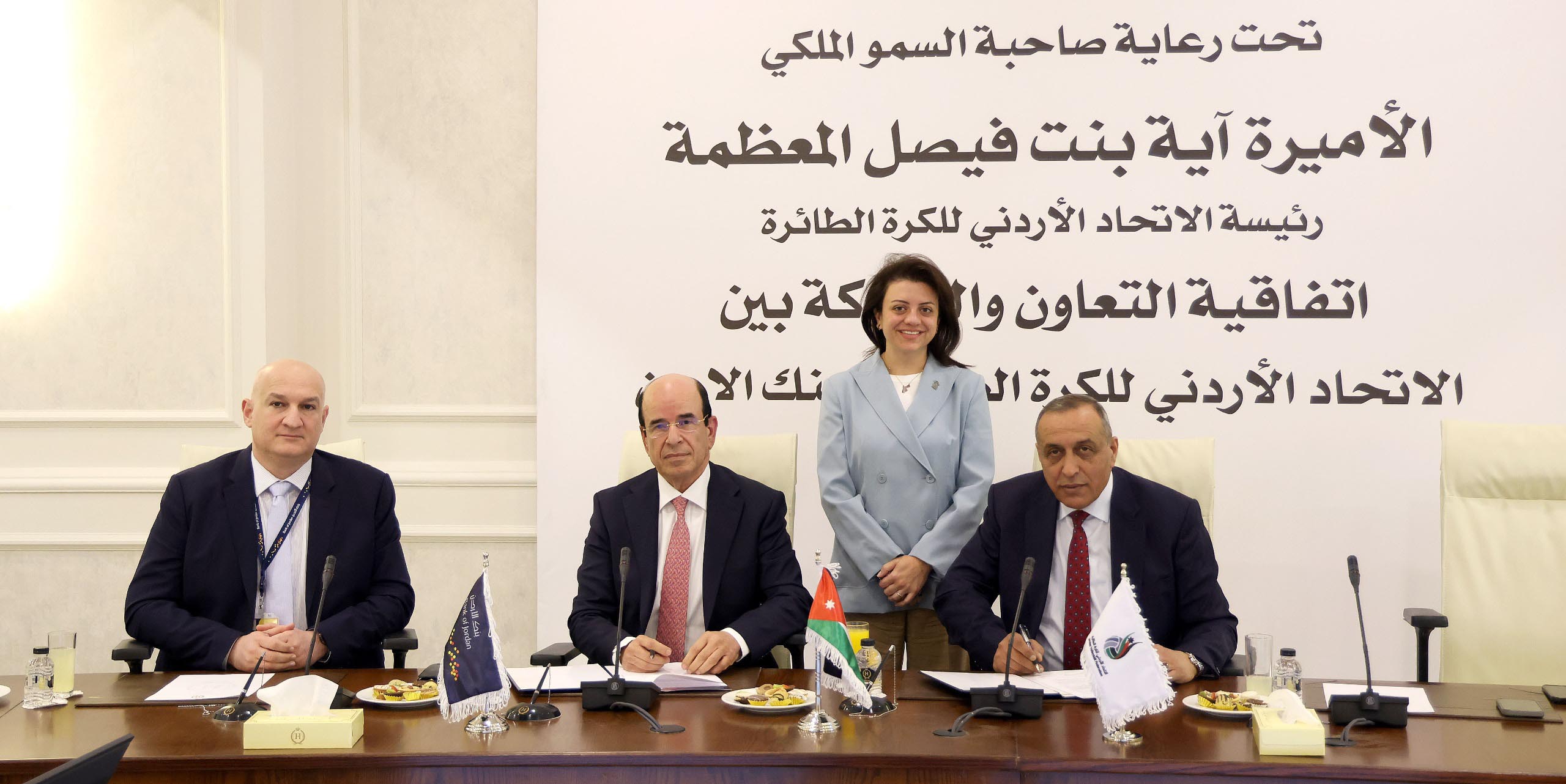 نشامى الإخباري – وقع الاتحاد الأردني للكرة الطائرة، اليوم الاثنين، اتفاقية تعاون وشراكة مع بنك الأردن، بهدف دعم أنشطة الاتحاد وتعزيز مسيرته في تطوير اللعبة، بحضور سمو الأميرة آية بنت فيصل رئيسة الاتحاد الأردني للكرة الطائرة.