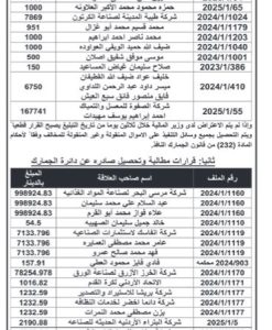 نشامى الاخباري – أعلنت دائرة الجمارك الأردنية، اليوم الخميس ، قرارات تغريم ومطالبة وتحصيل صادرة بحق عدة أشخاص وشركات.