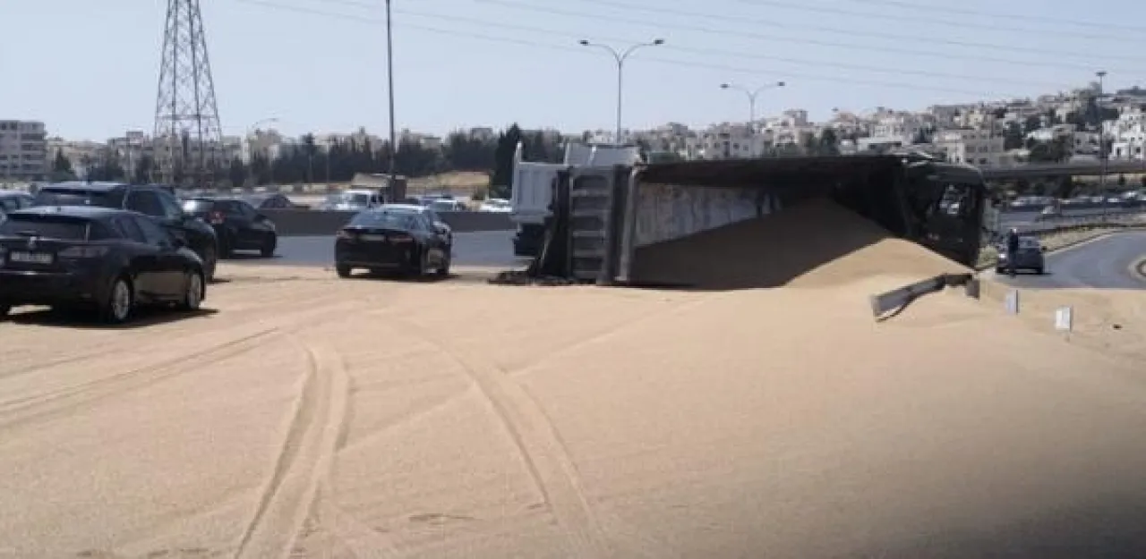 نشامى الاخباري – أدى تدهور مركبة شحن “قلاب” محمل بالرمل مساء اليوم الثلاثاء، على طريق المطار بعد إشارة الصنوبر باتجاه جسر الأمير حسين، إلى ازدحام مروري خانق.