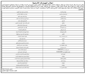 نشامى الاخباري – أعلن مركز جمرك عمان اليوم الإثنين، عن أسماء ممن لديهم دراجة أو بضائع أو مركبات محجوزة لدى المركز، ضرورة مراجعة المركز لتصويب أوضاعهم.