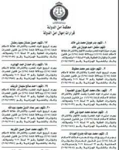 نشامى الاخباري – أمهلت محكمة أمن الدولة 42 متهماً عشرة أيام من تاريخ اليوم الخميس لتسليم انفسهم إلى السلطات القضائية المختصة لمحاكمتهم عن التهم المسندة لكل منهم.