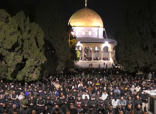 وقالت دائرة الأوقاف الإسلامية إن نحو 35 ألف مواطن أدوا صلاتي العشاء والتراويح في رحاب المسجد الأقصى رغم إجراءات الاحتلال.